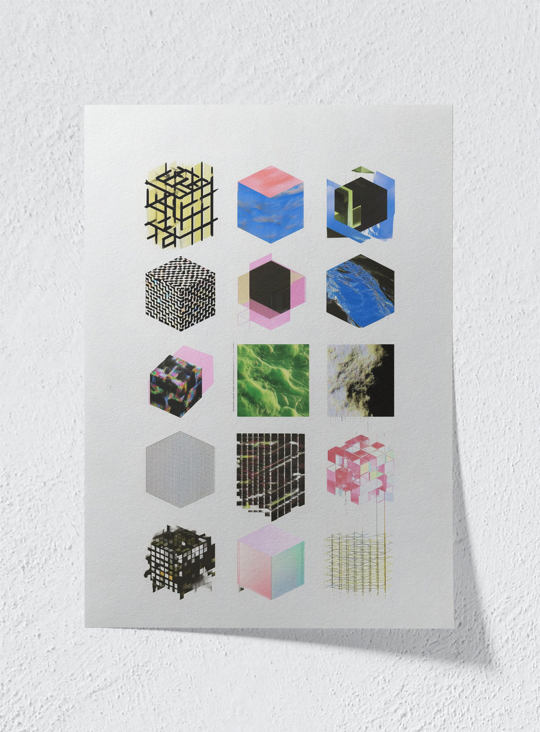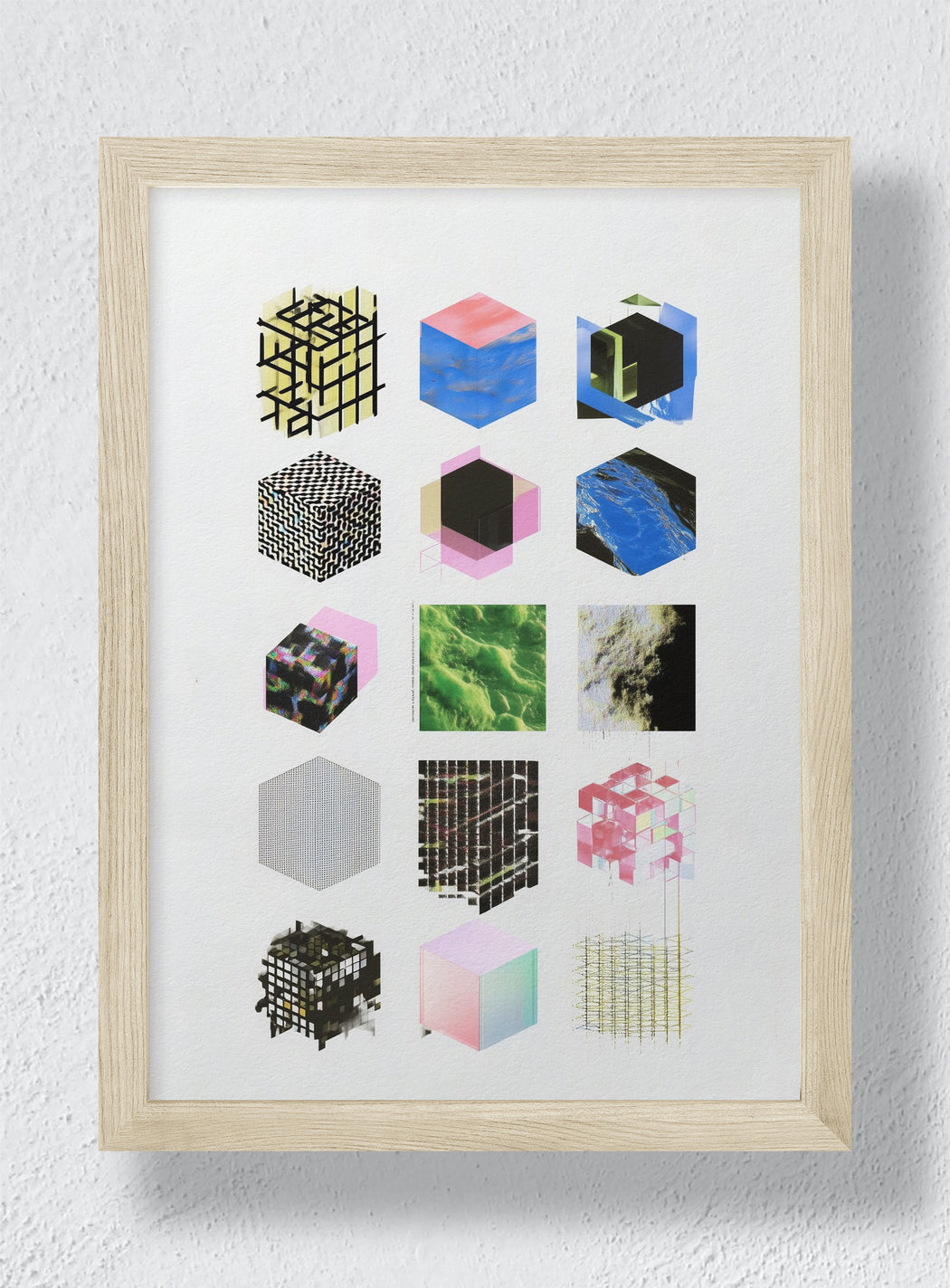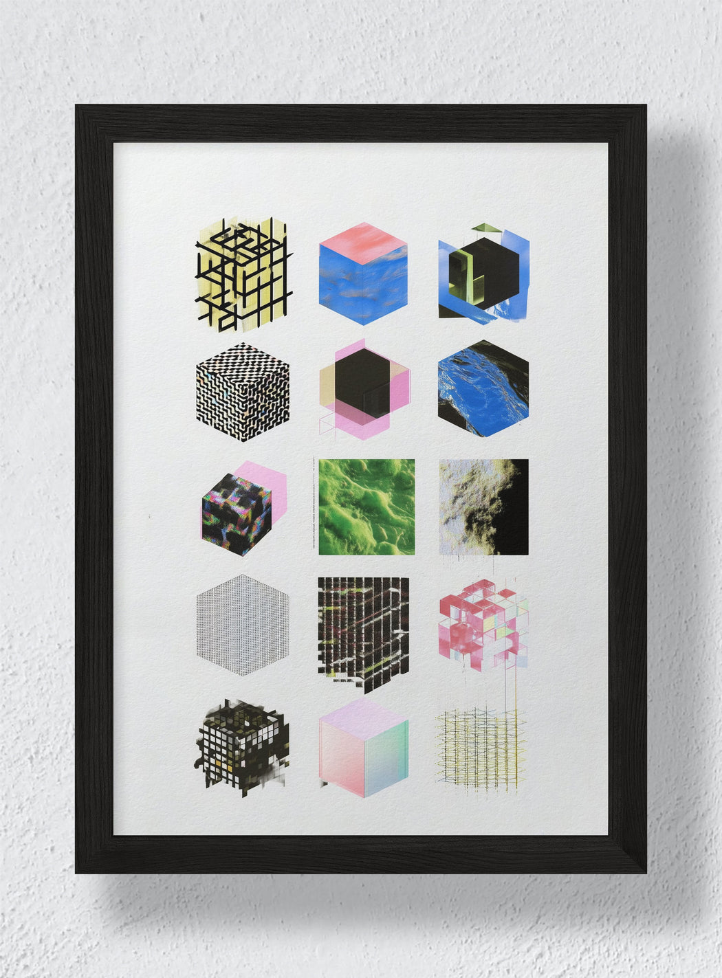 "A taxonomic chart of the digital cell. Each cube a sample from a different ecosystem—noise, pigment, wave, or light—archived in perpetual mutation."
