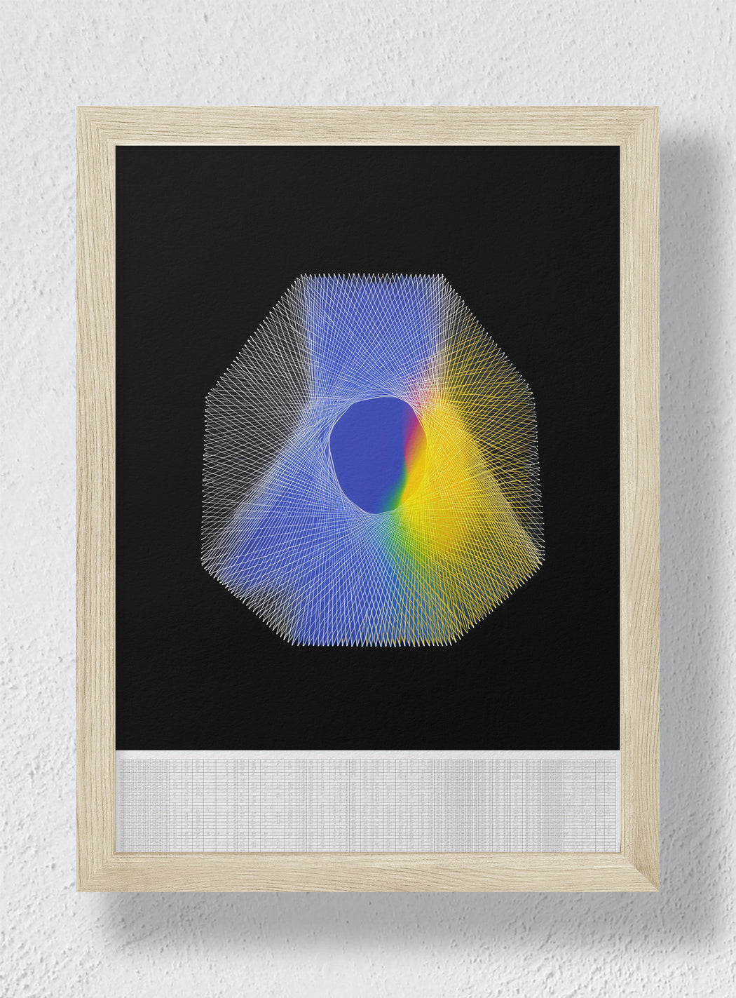"Across these works, nature, body, and cosmos are filtered through algorithmic sight. The sun is reduced to an icon, the sea becomes a cube of coordinates, the human face dissolves into contour lines. Yet in these fractures lies something mythic: a glimpse of beauty beyond control, where art records not truth but the failure of truth’s machinery."